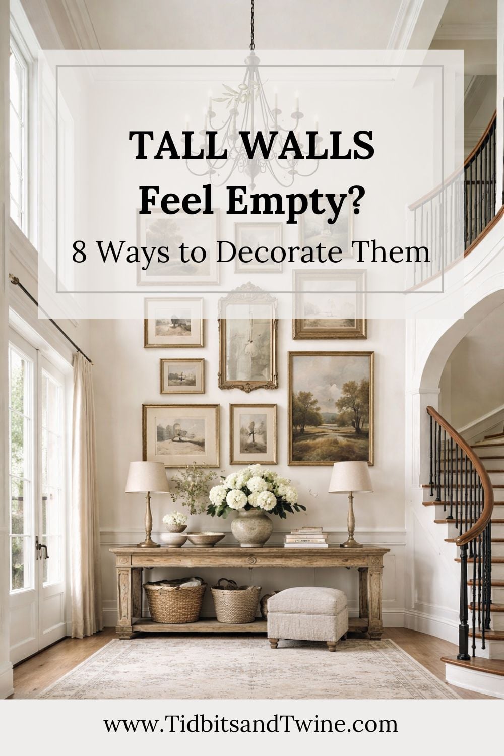 Whether you use one idea or combine several, the goal is simply to make the wall feel balanced within the room. Tall ceilings create beautiful volume, but they also require decorating that keeps the scale of the space in mind.