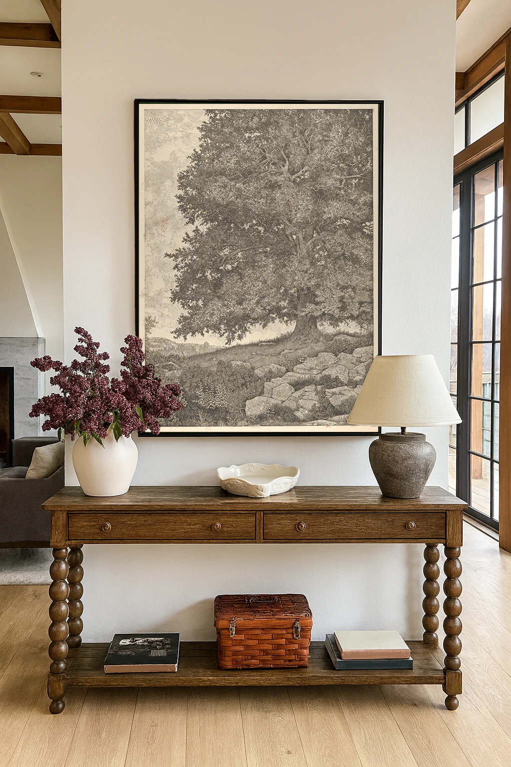 This is what keeps your console from looking like a store display. A framed photo, a small antique, or something meaningful makes it feel like your home.