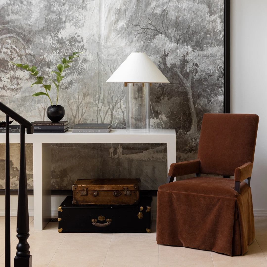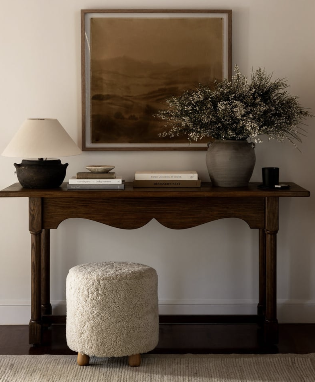 When a console sits against a wall, you are styling upward as much as across. The wall gives you an anchor point. That anchor is what makes the whole thing feel grounded instead of random.