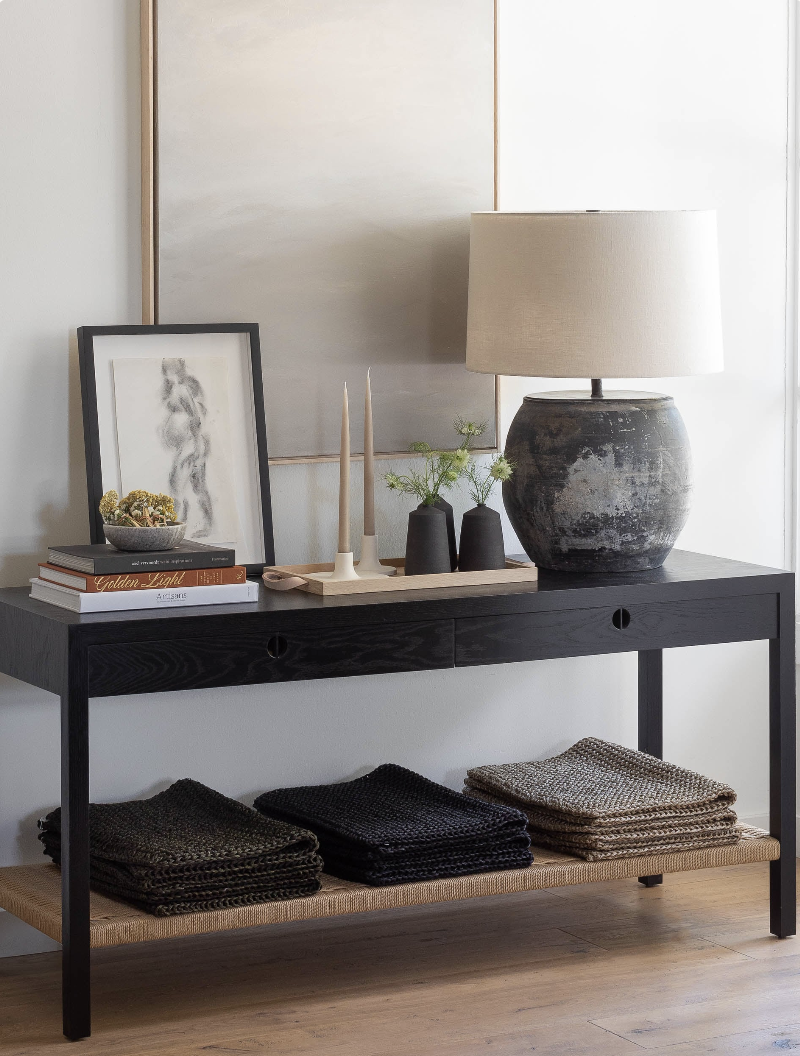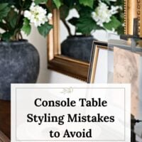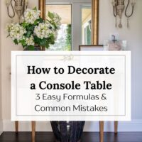 Technically, a console table sits against a wall and a sofa table floats behind a couch. In this post, I’m talking specifically about how to decorate a console table against a wall. The “rules” for decorating when it’s against a wall are different than those when it’s floating behind a sofa. I’ll write a separate post about that soon…