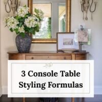 And honestly, how to decorate a console table is one of the most common decorating questions. You’re staring at a large flat surface and the options feel endless. A lamp? Two lamps? Books? A tray? All of it? It can get overwhelming fast. So today I’m breaking it down into simple, easy-to-follow formulas for console table styling.
