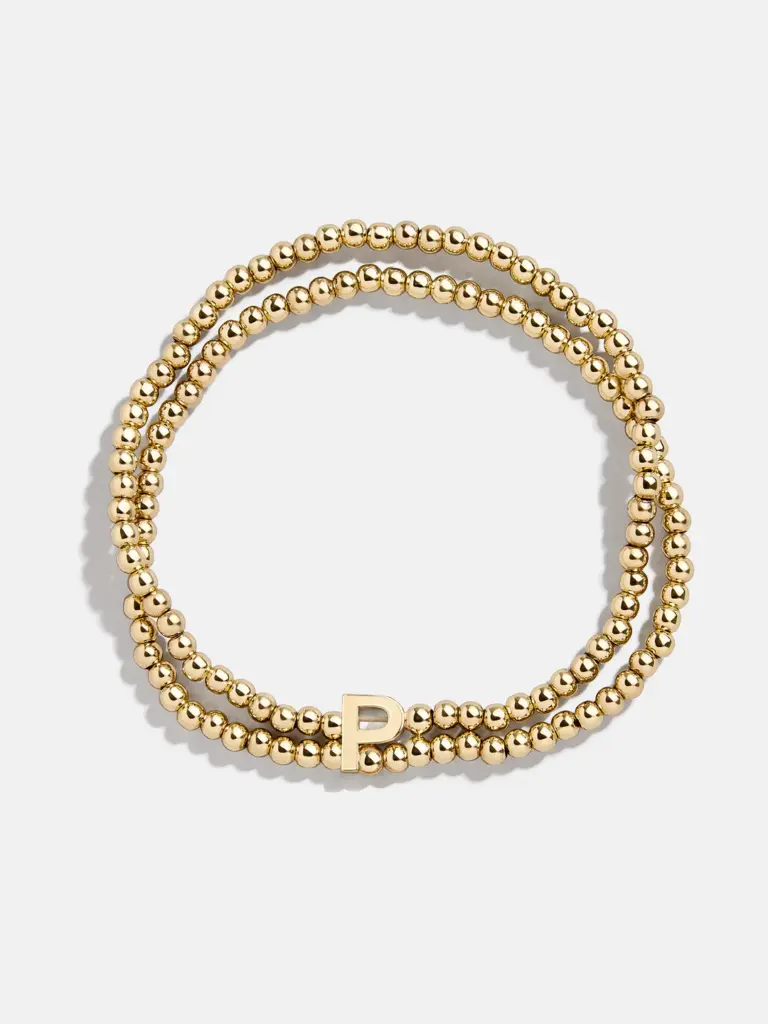 A cute personalized bracelet with gold-tone beads and your choice of initial, so you can make it “yours.” It’s stretchy, easy to wear every day, and perfect for layering or wearing solo.