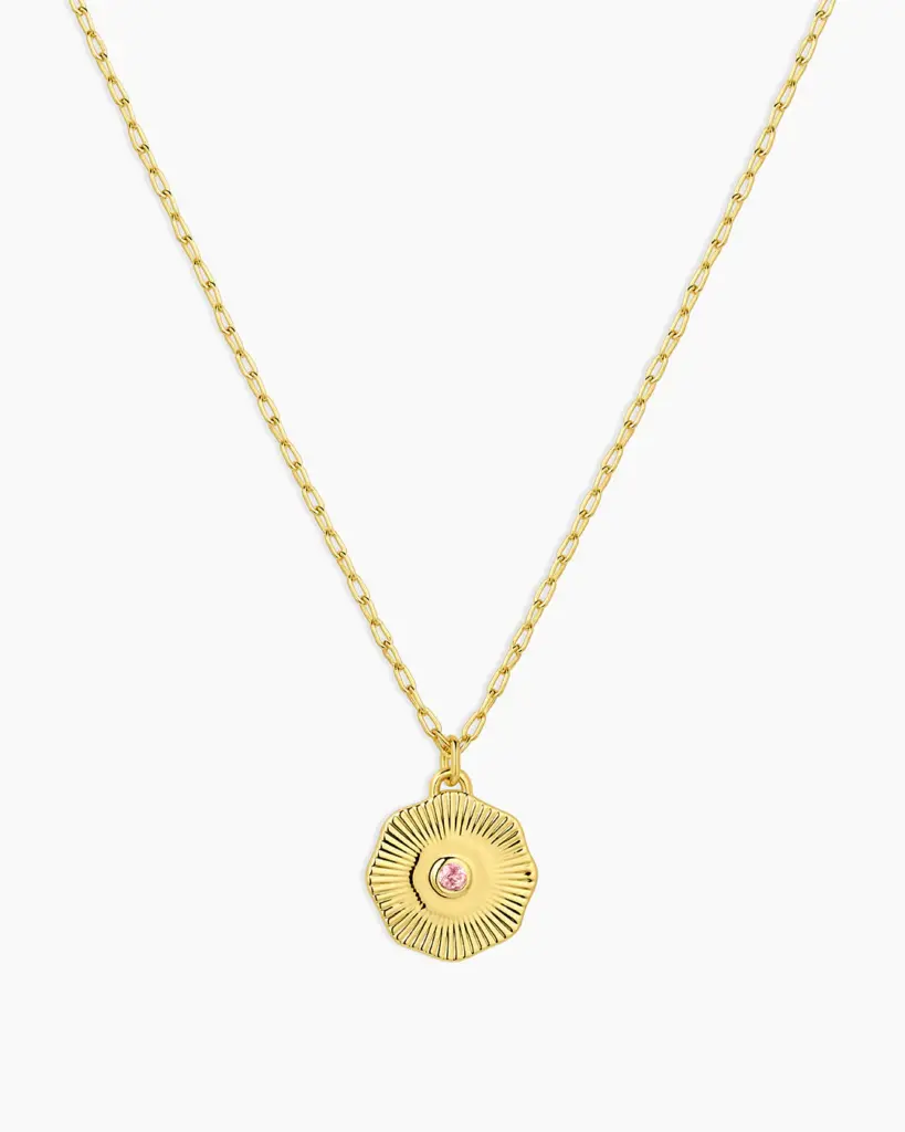 A simple gold-plated necklace with a birthstone coin charm — meaningful, pretty, and easy to wear every day.