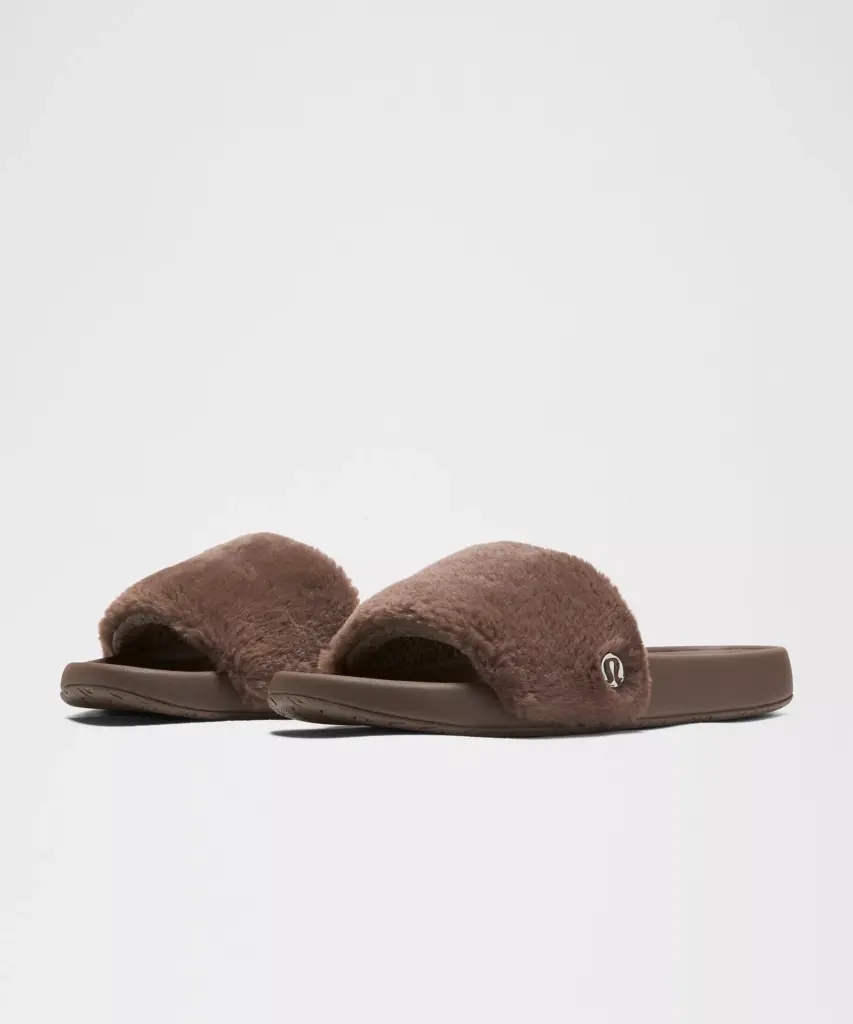 Faux-fur slides that feel like slippers but go anywhere — comfy, easy, and stylish.