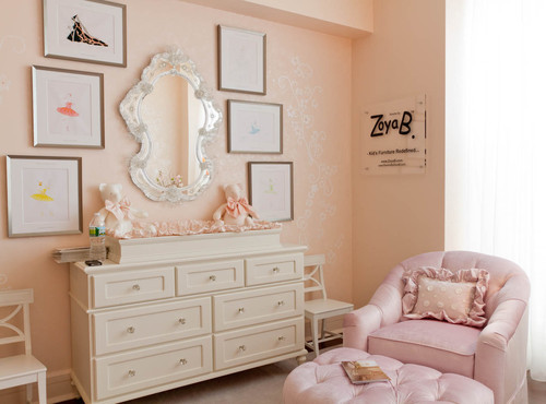 In this beautiful little girl’s room, rhythm is established by the progression of picture frames as they move from the highest point to the lowest. This progression helps move your eye along an established path.