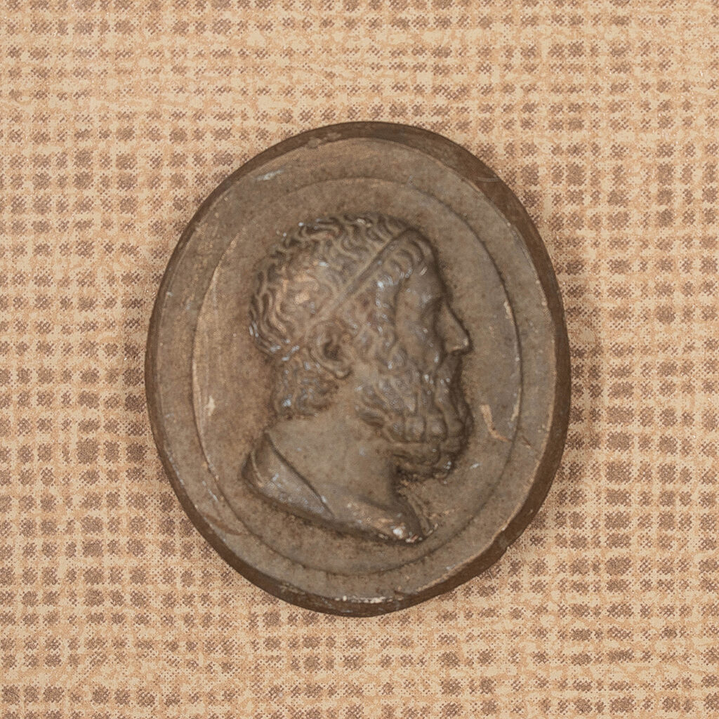 An intaglio is a small plaster relief, once collected by Grand Tour travelers as a souvenir of their journey.
