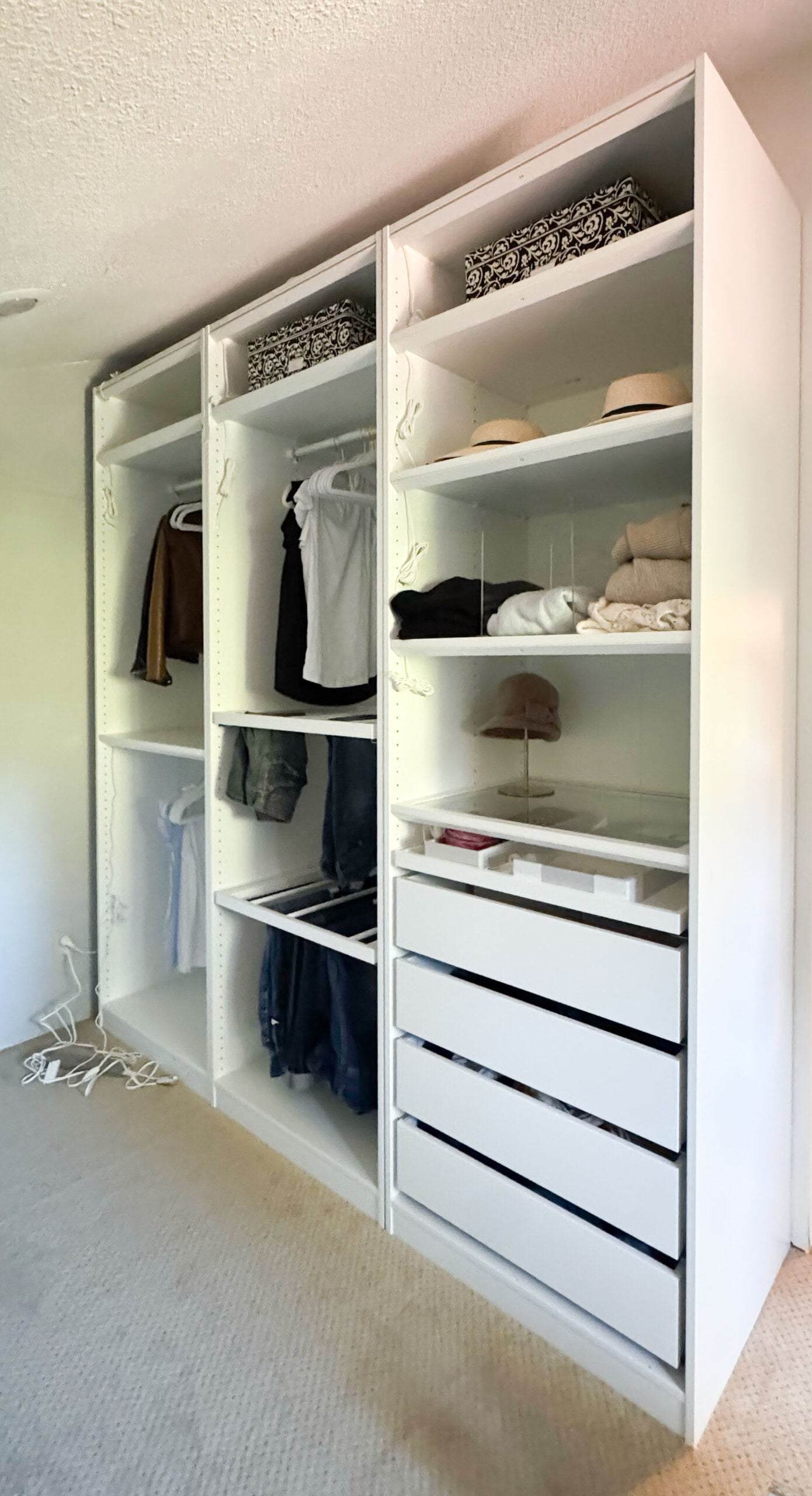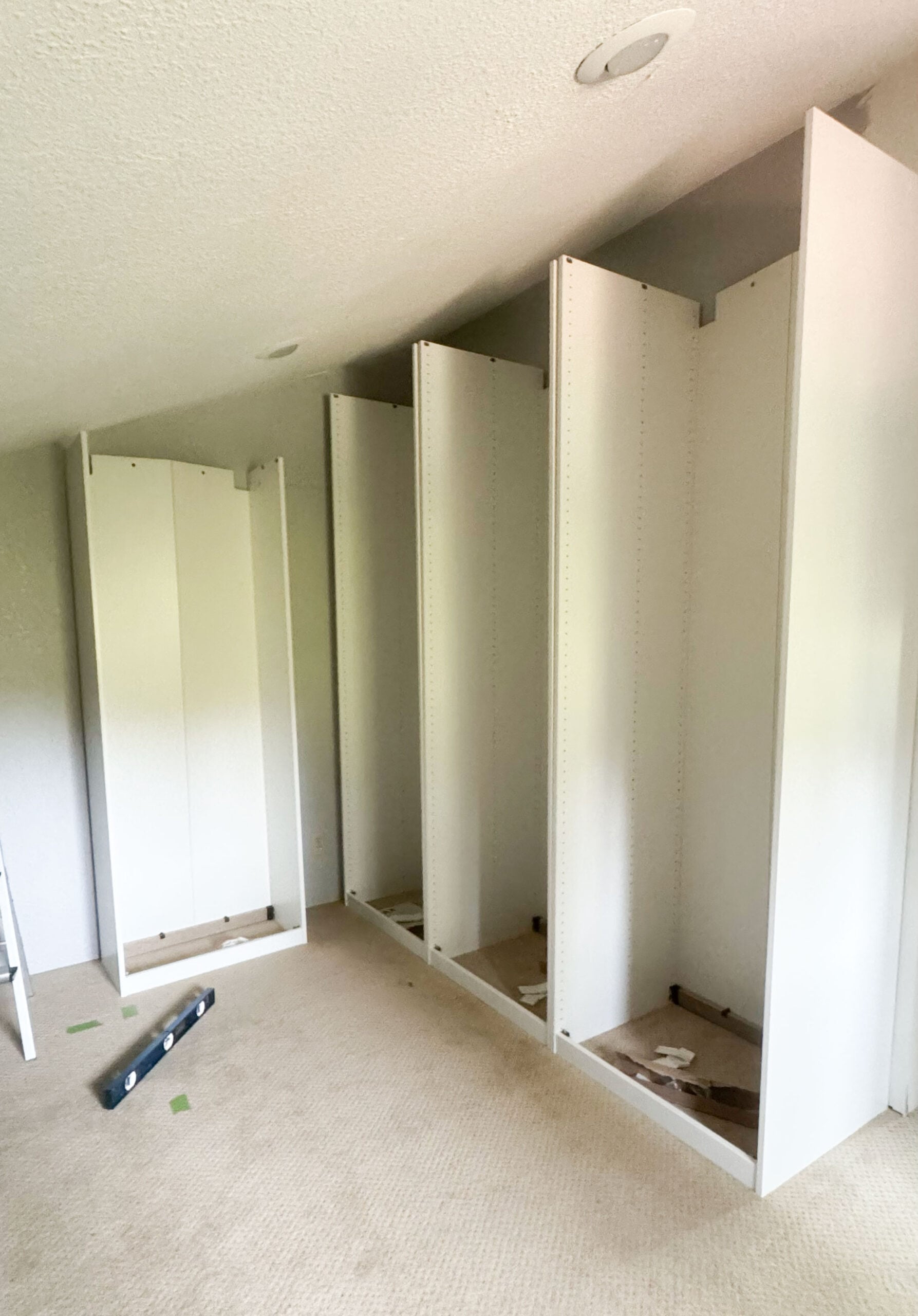 I spent the entire weekend assembling IKEA PAX units for the tall wall of the closet. This part is not glamorous, not tutorial-worthy, and definitely not groundbreaking… but it is progress.