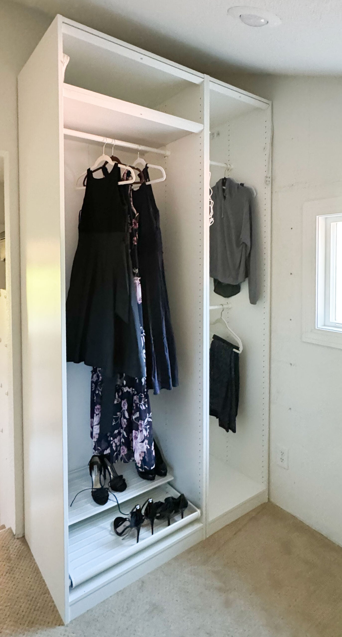 - I needed long hanging space. In the warmer months, I wear a summer dress almost every day, so that was non-negotiable.