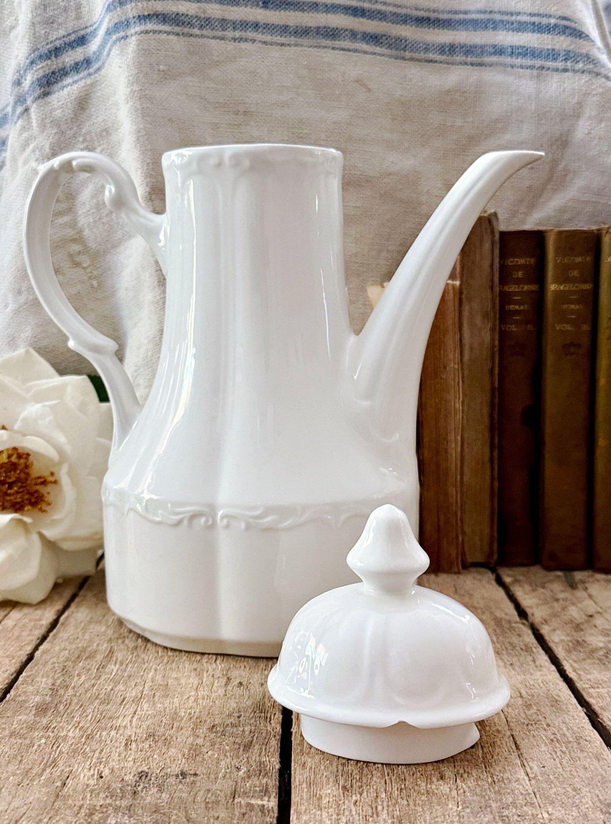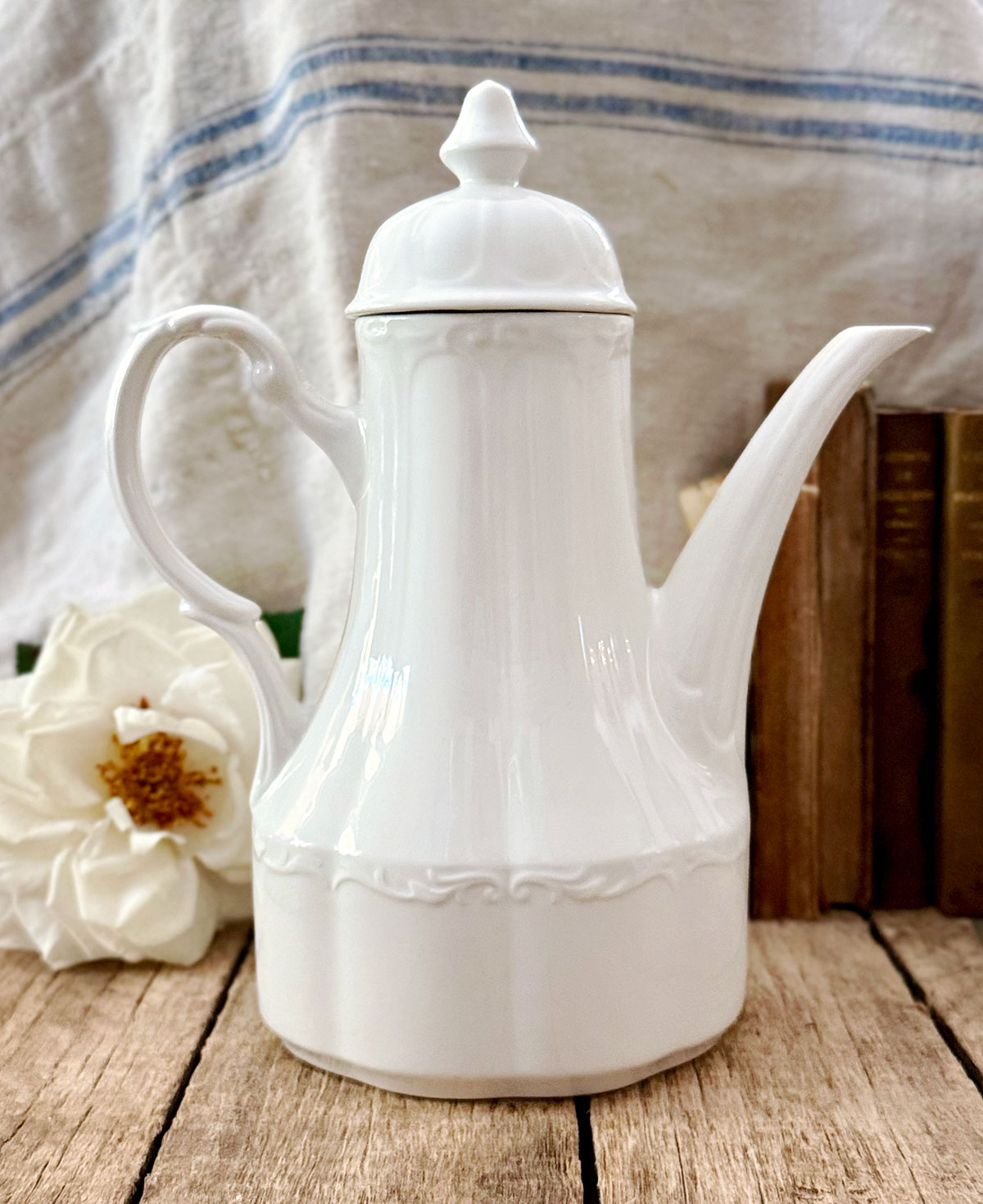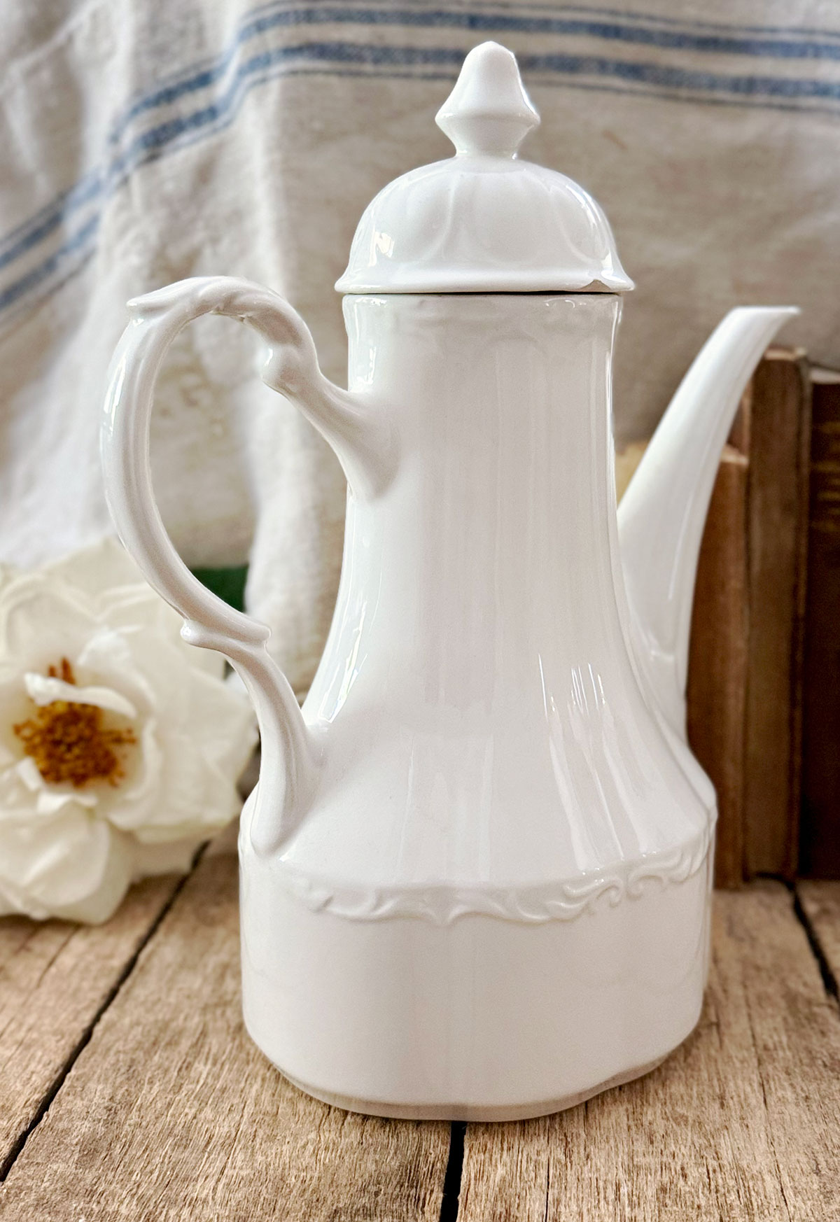 The clean white glaze makes it versatile for everyday use while also displaying beautifully in a farmhouse kitchen, cottage hutch, or vintage ironstone collection. Whether used for serving tea or coffee, or simply as a decorative accent, this teapot carries both charm and history.