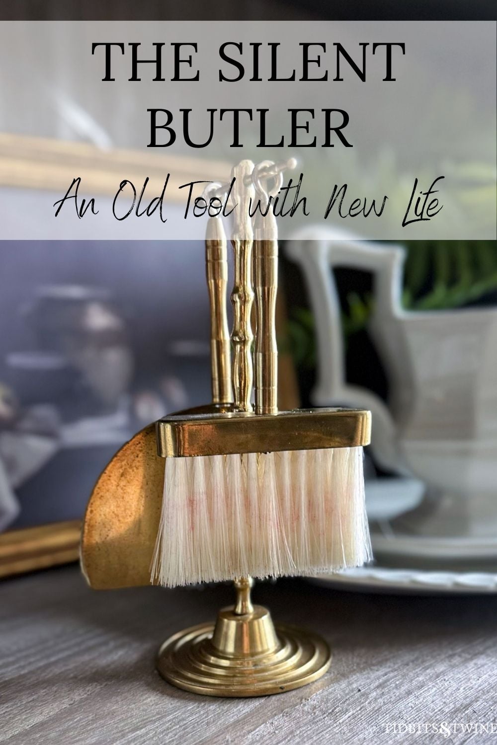 The later style is what most people picture when they hear “silent butler.” This is the freestanding tray paired with a small brush. These became popular later in the 1800s and into the early 1900s, particularly during the Victorian and Edwardian periods.