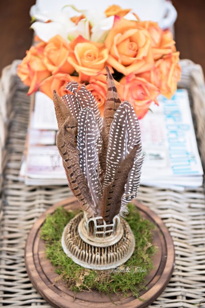 Let’s start in the living room, which is the first room you see when you walk through the front door. I’ve freshened things up at bit with some brighter coffee table decor and of course, I’ve moved the furniture around again. I just can’t help myself!